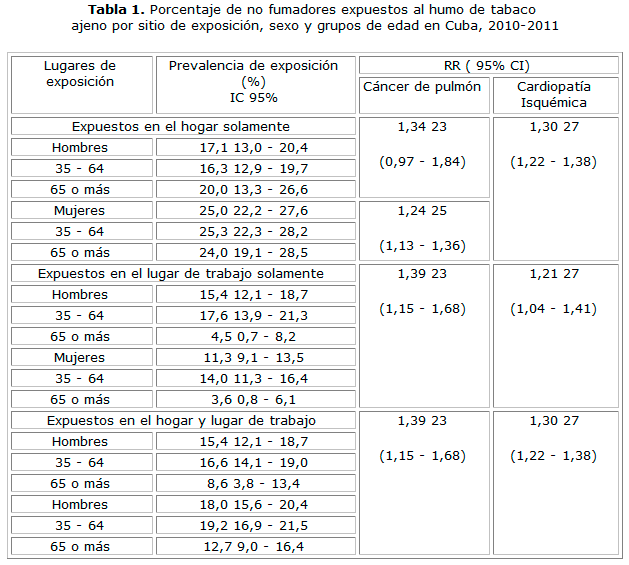 Mortalidad por cáncer de pulmón y cardiopatía isquémica atribuible al tabaquismo pasivo en Cuba - 2011